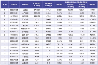 这张照片显示了18家汽车公司(单位/十亿元人民币)的净收入和利润。数据来源:风。图:郭Xinzhi受到诸如销售增加以及汽车公司的总运营收益等因素的影响,通常会导致增长。根据风数据,在今年上半年,统计范围内包含的18家汽车乘用车公司( + H)的总运营增长率为12.9亿元人民币,比上一年增加了14.16%。其中,这12个汽车公司的总运营收益年复一年增长,汽车公司的数量占66.67%。同时,汽车公司的净收益是由净利润产生的,净利润归因于18个交易公司的股东达到了26008亿元人民币,上一年下降了9.18%。我从这种意义上讲,行业专家表示,我国新能源车市场增长的冲动并没有减少,并且上半年许多汽车公司的业绩与期望一致。但是,随着市场竞争变得越来越激烈,提高盈利能力的方法已成为汽车公司的普遍挑战。 “ Stady Stay”的汽车公司在2025年上半年加速,以跟上多维形式的竞争趋势。这两个指标分别增加了33.75%和14.16%的年,这表明与工业媒介增长率的一般收入状况有差异化的性质表明,主要汽车制造商的收入增长正在不断增长,低层汽车制造商的收入增长更快。相关汽车制造商的销量急剧增加导致一般“中等职位”的增加。特别是,总运营I汽车公司(例如LeapMotor(09863.HK)和Baic Blue Valley(600733.sh))的汽车公司的价格超过了三位数。其中,与上一年相比,LeapMotor的增长率最快。在2025年上半年,LeapMotor的总运营收入将主要通过增加车辆的交付和完整零件的量来产生,并通过战略合作和碳点的交易来产生。与Aumthen相关车辆的收入增加和全部增长,导致2425亿元人民币的增长,年复一年增长174.15%。在2025年的上半年,麻风车的总交付量为221,700辆,比2024年同期高155.7%。第二个是Baic Blue Valley。在2025年上半年,Baic Blue Valley的总营业收入达到了9517亿元人民币,年复一年154.38%。 Baic Blue Valley在上半年获得了67,200辆汽车的销售额,年复一年139.73%。是ong这些,圣战品牌的销售额为53,200辆,比上一年增长了198.06%。从收入规模的角度来看,比德(002594.SZ)仍然是行业领导者。在今年上半年,BYD的总营业收入达到371.128亿元人民币,比上一年增长了约23.30%。其中,汽车收入,用汽车和其他产品的相对产品约为33.5亿元人民币,与上一年相比增加了32.49%。当前,比德收入的增长主要是由其新能源车业务的增长驱动的。根据中国汽车制造商协会的数据,2025年上半年的BYD Auto市场份额从上一年增加了2.2点,达到13.7%。但是,一些汽车制造商也表现出收入的下降趋势。 Dongfeng Co.,Ltd。(600006.sh)今年的总运营收益为5,03十亿元人民币,比上一年下降了13.22%。 GAC组(601238.SH)的总运营增益约为4261亿元人民币,自去年同期以来约为7.88%。 Autochangan(000625.SZ)的总运营增益为72.691亿元人民币,与上一年相比下降了5.25%。近年来,集中式行业增加了“大型”汽车公司的利润。信任新的智能能源和连接技术的快速发展,汽车行业的重复速度加速了,市场竞争得到了进一步加强,汽车公司的利润压力继续增加。根据风数据,今年上半年上半年列出的18家公司的股东的净利润为6500万元人民币,比上一年减少了89.11%。平均水平为144.45亿元,比上一年下降了9.18%。 ThE中位数急剧下降,但平均值低于10%,表明“行业的马修效应”越来越重要。 Wawaist和尾车公司通常改变了损失,大大降低了其“平均价值”。大型汽车公司仍然获得了几乎80%的利润。根据特定的商业视角,由于规模降低和成本的影响,主要的汽车制造商可以具有强大的压力性,并保持激烈市场竞争的盈利能力。在价格战,高研发成本和高污染折旧的情况下,中小型汽车制造商迅速“蒸发”了,造成了“淘汰”行业的热量。由于其绝对规模,BYD的净福利仍然处于最高水平。但是,尽管BYD的总营业收入在一年中增长了23.30%,但归因于贸易公司股东的净收入仅为151.11亿元人,仅13.79% – 年龄。发生类似情况红色的汽车红色。在2025年上半年,汽车的总运营收益为18092亿元人民币,比上一年增长了约0.96%,但贸易公司股东的净利润为7.33亿元人民币,比上一年减少了18.17%。在利润率方面,诸如Cialis(601127.sh)之类的汽车公司运行良好。在2025年上半年,贸易公司股东股东的净收益为29.42亿元人民币,在2024年上半年上半年增长了81.03%。上一年的主要商业成本降至43.87亿元,上一年为472.27亿元。由于运营成本的降低,Cialis的总利润率从去年同期的24.55%增加到28.84%。 Cialis解释说,这主要是由于汽车销售减少和产品销售的影响。不同汽车公司的盈利能力大不相同。例如,一些汽车公司MPANIES具有更大的盈利能力,净收益已将损失变成利润。在2025年上半年,由于贸易公司股东的股东净利润为3303万元,这变成了利润,而去年同期损失了22.212亿元。同时,销售增长,lepan auto今年上半年的总利润率为14.1%,但每年为20%或20%。在24年期间,同一时期增加了1.1%,增加了13个百分点。一些汽车公司已将正净收入变为负净收入。例如,由于2025年上市的公司股东的净收益ofgac Group损失了1516亿元人民币,乘用车产品的总收益为-6.86%,自同期以来为7.90个百分点。 Haima Automobile(000572.SH)表示,该公司目前面临几种风险和挑战。首先,该公司的谈判连接蛋白ITISS相对较弱。当前的行业成本压力被动地接受某些供应商的最高收购价格。其次,个性化的生产是不平衡的,供应链管理的增加意味着不稳定的供应链和风险不足。第三,诸如国外市场不确定性和收款风险之类的因素